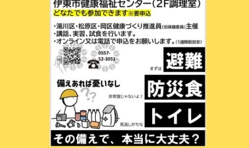 健康づくり推進員主催の講演会を開催します! 特に湯川、松原、岡地域にお住みの方。各地域の現状をまとめた防災知識がたくさんの講演となっています。 どなたでも参加できるので、是非皆様の参加をお待ちしています。 備えあれば憂…