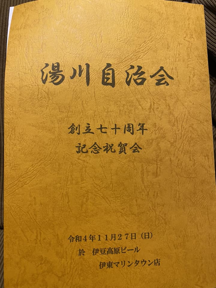 湯川自治会 創立70周年記念祝賀会に、地元議員として御招待いただきました。