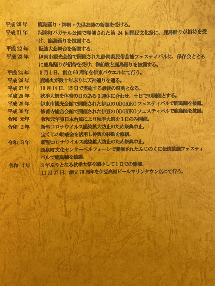 いただいた70年のあゆみや、会場で流されていた昭和40年代の祭典風景をみて、改めて伝統を守って引き継いできた方達に感謝の気持ちでいっぱいになりました。