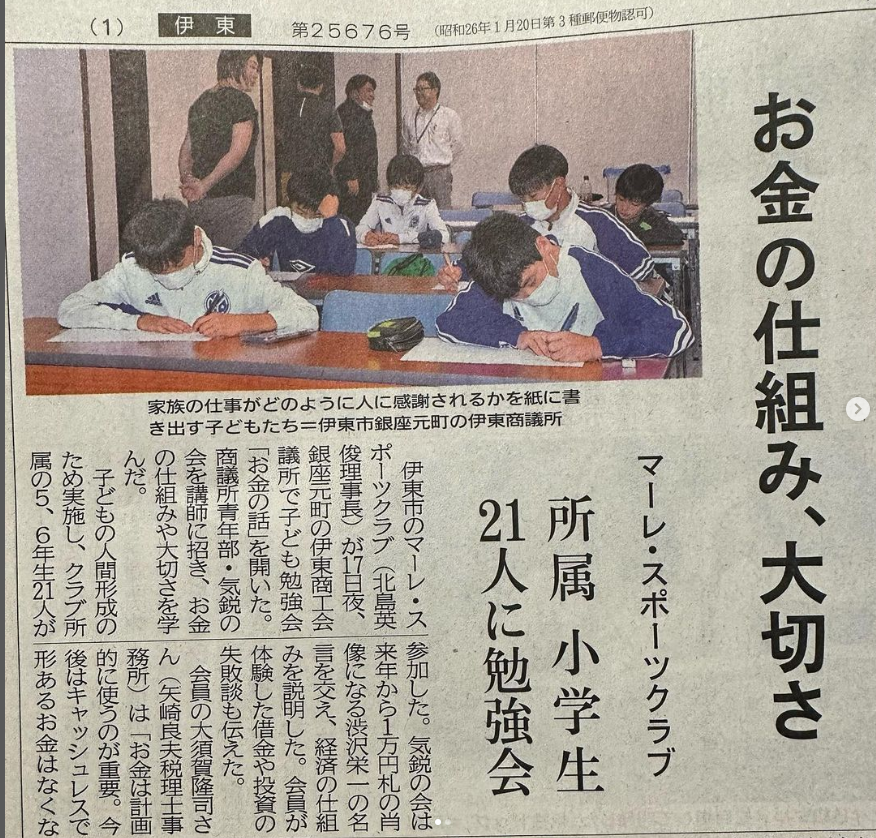 先週、「お金について、お金の大切さ」をテーマに私が所属する気鋭の会有志メンバーが講師になり、NPO法人マーレスポーツクラブの子供達に講義を行いました!