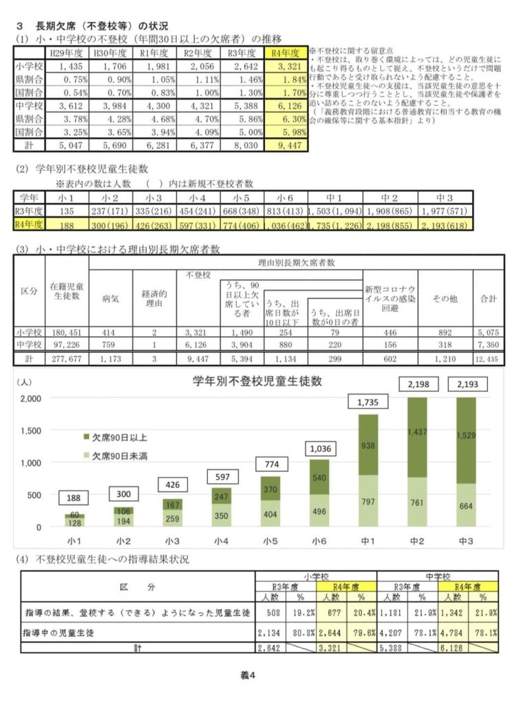不登校傾向の数についてもお聞きしましたが、中学校では別室登校をしている生徒数はカウントしていないそうです。