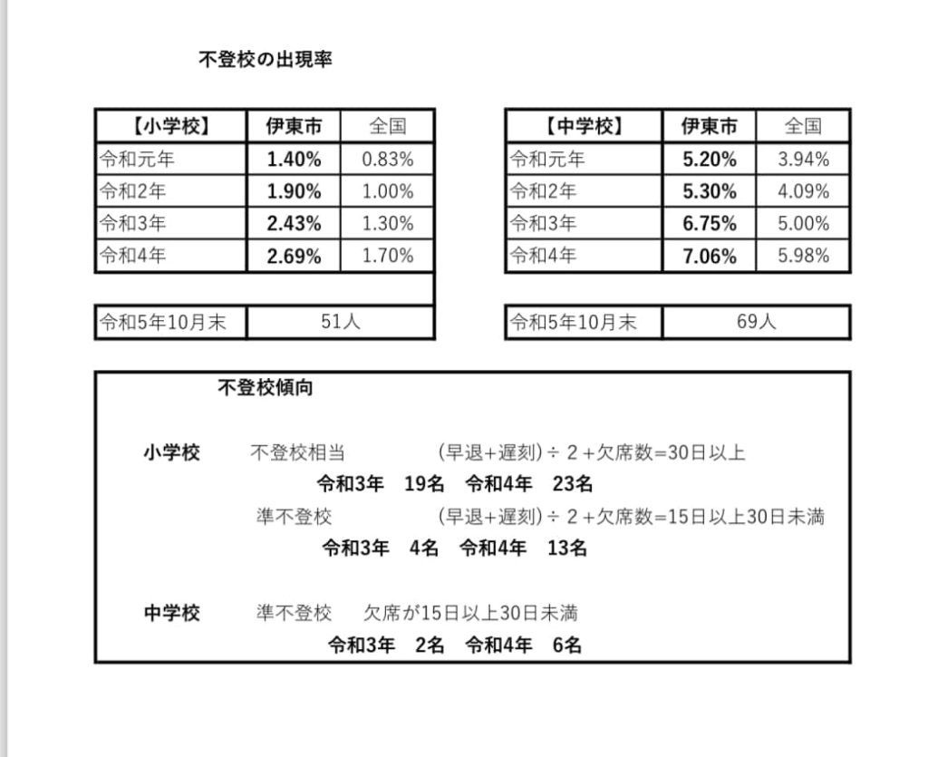 全国的にも増加している不登校。伊東市の現状をお聞きしました。