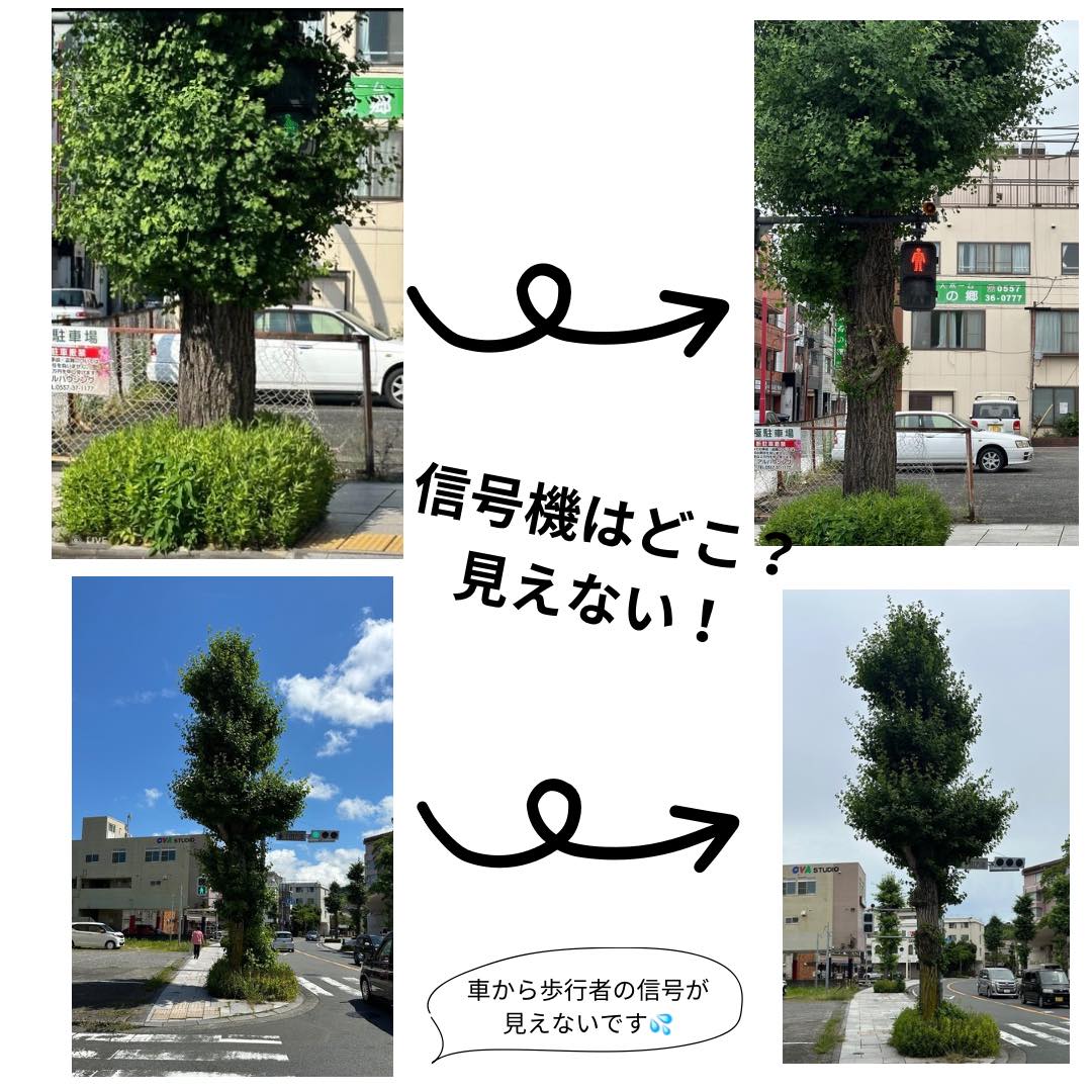 今は銀杏を剪定する予定がないとのことで、信号機が見えない箇所を建設課職員の方が切ってくれました。これも翌日には対応。