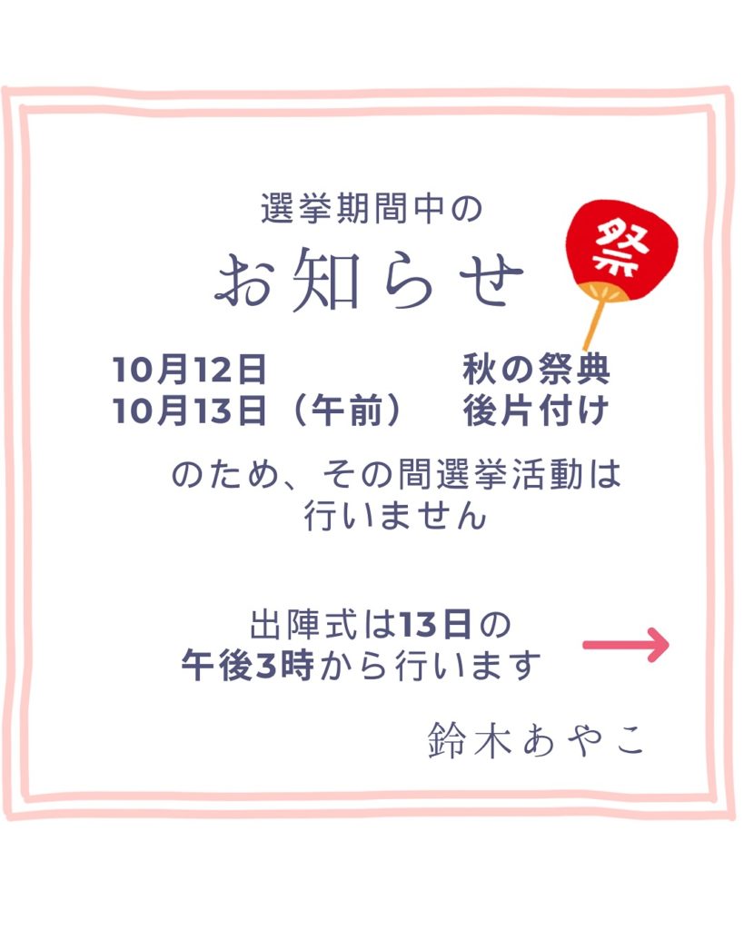 準備から後片付けまでしっかりやり遂げてから、選挙活動を開始させていただきます。
