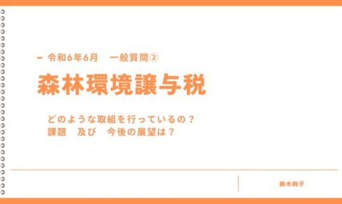 一般質問、2点目は環境譲与税について伺いました。森林環境譲与税、どのような取り組みを行っているの?課題や今後の展望は?