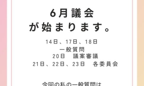 明後日から6月議会が始まります。 一般質問はトップバッター、6月14日の10時過ぎからになります。 何回経験しても緊張してしまい、当日の朝には心拍数120を超えてます。と時計から通知が。 そんなわけで、早く緊張から脱した…